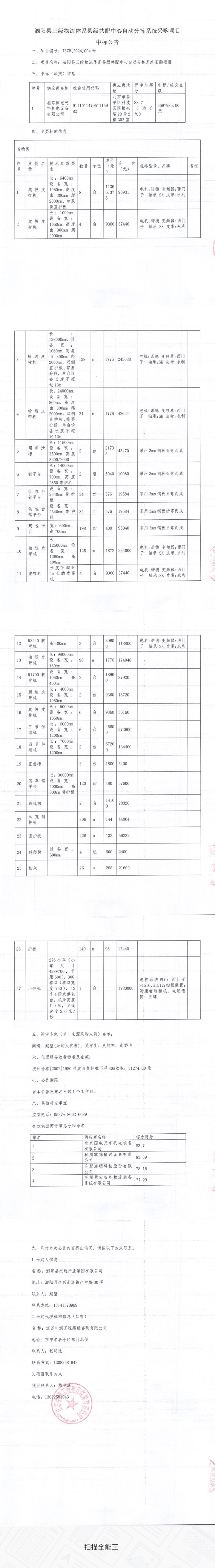 泗陽(yáng)縣三級(jí)物流體系縣級(jí)共配中心自動(dòng)分揀系統(tǒng)采購(gòu)項(xiàng)目中標(biāo)公告